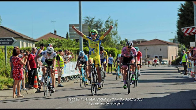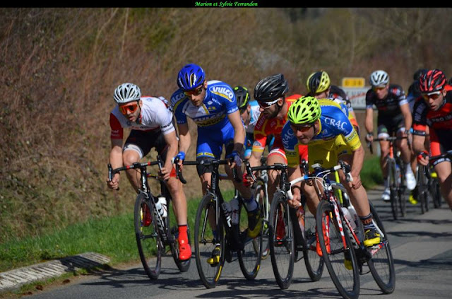Le circuit des 4 cantons 175 km s'est joué sur le circuit final de 6 km à effectuer 3 fois. Pierre Idjouadiene poussait certainement par son ami Etienne Fabre est sorti pour lui rendre hommage ...Et derrière un peloton de 50 coureurs se lança dans le sprint à 400 m de la ligne d'arrivée.les deux sprinters du CR4C Simon Guglielmi et Romain Faussurier bénéficièrent du travail de leurs coéquipiers. Mais la malchance les encercla :Simon sauta au fossé et Romain Faussurier fut projeté sur le trottoir..Romain bien placé pour le top 5 à 200 m de la ligne,s'est littéralement envolé lors d'une vague à gauche et a bien fait peur à son entourage.Au final plus de peur que de mal....mais grosse déception pour Romain..