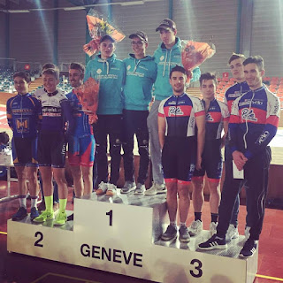 Les coureurs de DN1 préparent leur saison 2017 avec une montée en puissance vers leurs objectifs.Romain sous ce temps enneigé était engagé aux 12 h de Genève par équipe de 4. !Presque 200 km chacun à tourner sur la piste de 166m!Belle aventure dira Romain "j'ai apprécié ce type d'effort mais nous avons fini détruits! Nous étions un par équipe sur la piste,les équipes organisaient leur relais comme elles le souhaitaient,du coup il y avait toujours un coureur reposé qui arrivait sur la piste et mettait un tempo d'enfer aux autres...pas de repos...D'ailleurs lorsque ce fut notre tour on a mis aussi des tempo diaboliques....on a fini crampé ! Mais heureux de cet effort collectif entre coureurs ou ex coureurs du pole espoir..On a pédalé de 9h à 21 h....Chambéry s'impose ,nous sommes 3ème..."